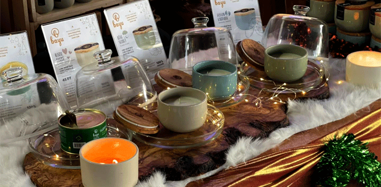 Les bougies BAYU ont réussit à séduire les visiteurs du marché de Noël grâce à la diffusion de senteurs d’ambiance fascinantes et positives. On dirait qu’il s’agit de bougies magiques et spirituelles.