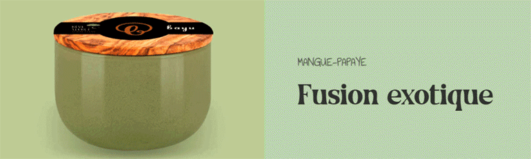 « Toutes les Bougies Bayü sont naturelles et sans Paraffine, sans CMR, sans Phtalates, nous utilisons que des Cires Naturelles : Abeille, Soja, Huile de Coco ».