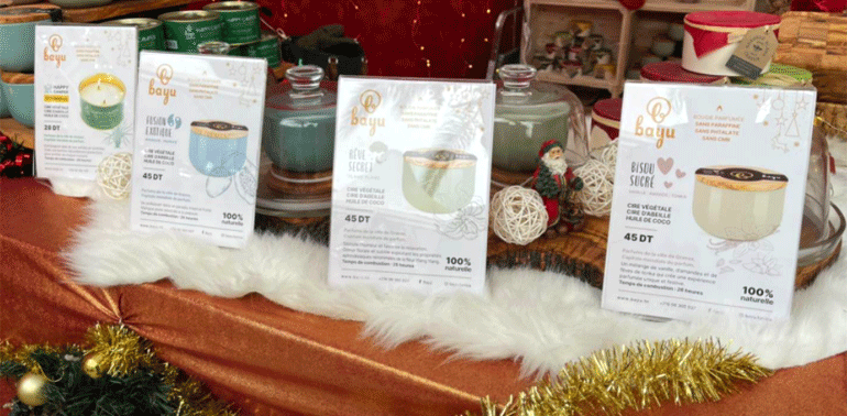Lors de notre visite du marché de Noël organisé en ce weekend 10, 11 et 12 décembre à Carpé Diem – Gammarth, nous avons découvert les bougies Bayü.