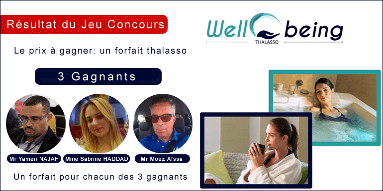 Wellbeing Thalasso et Tunisia Wellness ont le plaisir d’annoncer le résultat du Jeu Concours lancé le 17 Novembre 2021