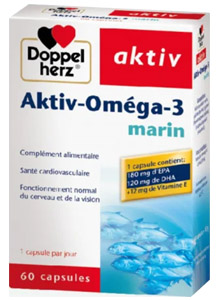 | Aktiv-Oméga-3 (60 Capsules): Les capsules contiennent 1000 mg d’huile de poisson de pureté exceptionnelle, fournissant de l’EPA et du DHA en quantités idéales pour une prise quotidienne afin de conserver santé et bien-être à long terme. Les capsules Aktiv-Oméga-3 marin apportent également de la vitamine E qui, par son effet anti-radicalaire, contribue à protéger les acides gras oméga-3 au sein des cellules.