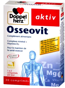 | AKTIV Osseovit (30 Comprimes): Le complément alimentaire AKTIV Osseovit est un supplément de calcium dosé de manière équilibrée pour un usage quotidien. Association du calcium à des nutriments ostéogéniques tels le magnésium, le zinc, le cuivre, le manganèse et bien-entendu la vitamine D.La combinaison unique de minéraux, d’oligoéléments et de vitamine D3 présente dans les comprimés aktiv Osseovit est idéale pour supporter la constitution et le maintien d’une ossature et d’une dentition solides. |