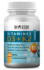 Vitamine D3+K2 (60 Géllules): Les vitamines D et K sont deux vitamines indispensables pour le corps humain afin de croître et de maintenir les tissus osseux, ainsi que de blinder l’immunité. |