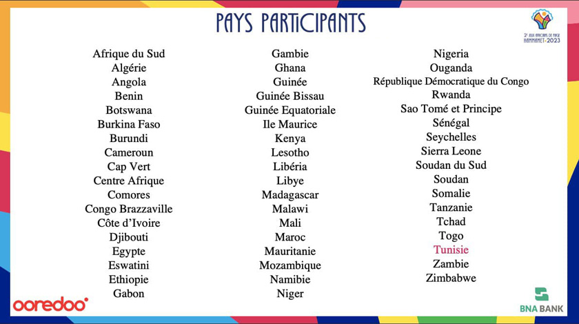 L’édition 2023 est ouverte aux 54 CNOs membres de l’Association des Comités Nationaux Olympiques d’Afrique (ACNOA). Plus de 800 athlètes (environ 1400 accrédités) sont attendus.