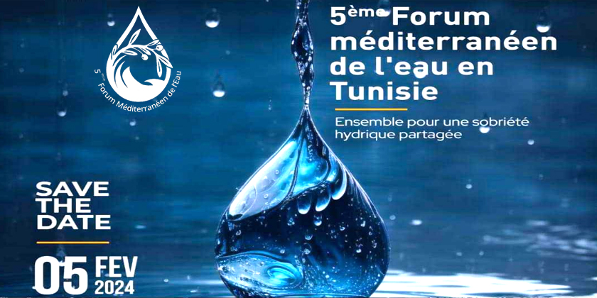 Sous l’égide du Conseil Mondial de l’Eau et le Secrétariat de l’Union pour la Méditerranée : le Forum Méditerranéen de l’Eau dans sa 5ème édition se tiendra à Tunis du 05 au 07 février 2024 sur invitation du Ministère tunisien de l’Agriculture, des Ressources Hydrauliques et de la Pêche, organisé par la Société Nationale d’Exploitation et de Distribution des Eaux (SONEDE) et l’Institut de Méditerranéen de l’Eau (IME).